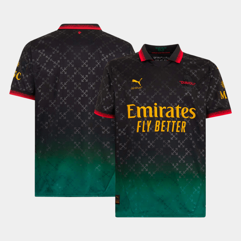 AC Milan Fourth Away Soccer Jersey 2024/25 Description about the AC Milan Fourth Away Soccer Jersey 2024/25 :Let me introduce the AC Milan Jersey Fourth Away 2024/25, available for size S,M,L,XL,2XL,4XL.The AC Milan Jersey 2024/25 is made up of the black and green details, this new season the iconic black and red stripes are replacd. The bold and new design attracts everyone's attention around the world. The AC Milan Jersey 24/25 fourth away was designed by Off-White. AC Milan Jersey 24/25 fourth away is along with yellow, green and red logo. The '63' is embedded in the back collar, representing their success in winning their first European Cup in 1963, a history that is still celebrated today. Moreover, Gojersey uses lightweight polyester interlock fabrics to create a AC Milan Jersey that mirrors the fit and feel of the AC Milan kit worn by AC Milan on the pitch. So let's get the AC Milan cheap soccer jerseys now!Where to buy cheap soccer jerseys? Gojersey's vision is to offer customers the chance to wear top-quality, affordable AC Milan jerseys featuring their favorite teams. Like the AC Milan replica soccer jerseys, AC Milan retro soccer jerseys, and so on. We've also become the preferred choice for numerous wholesalers. We've also become the preferred choice for numerous wholesalers. Furthermore, if you have any question or issue of Gojersey, every customer will be assisted by our 1 to 1 professional customer service via whatsapp and online-chat. By the way, do u prefer more AC Milan Jerseys? Here are two recommendations for you. AC Milan Home Soccer Jersey 2024/25 , AC Milan Third Away Soccer Jersey 2024/25.Details: