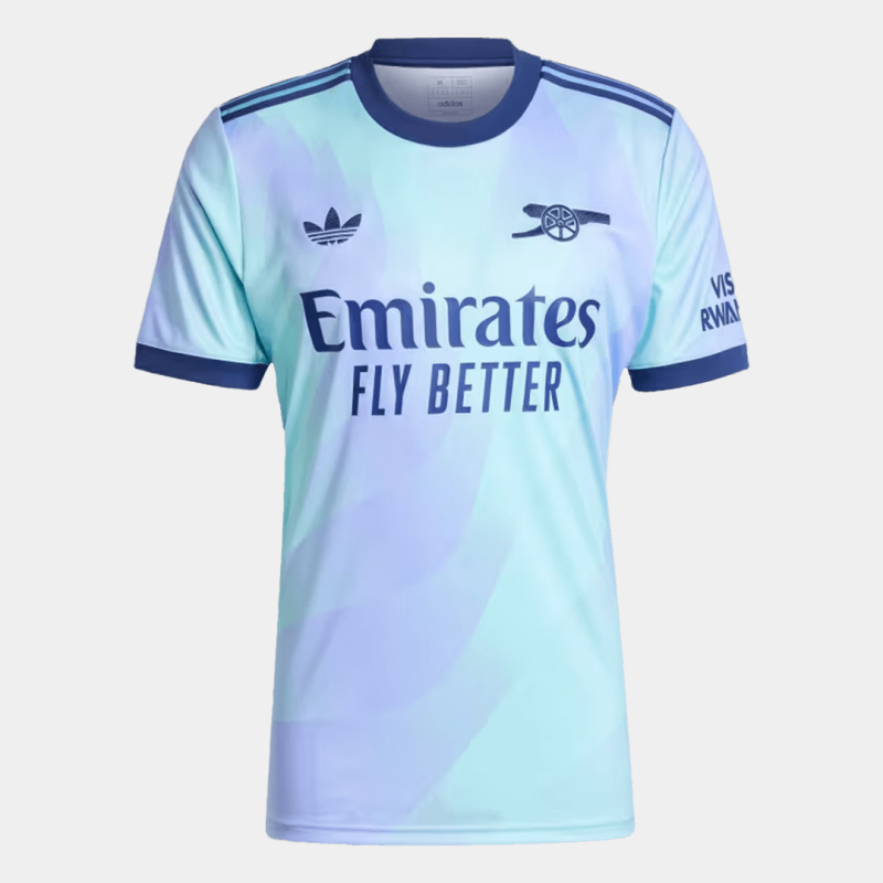 Arsenal Third Away Jersey 2024/25 Description about the Arsenal Third Away Jersey 2024/25:Let me introduce the new Arsenal Jersey Third Away 2024/25, available for size S,M,L,XL,2XL,3XL,4XL. The Arsenal jersey is predominantly sky blue with the club badge as well as the collar and shoulders in midnight blue. The Arsenal jersey 24-25 has an aqua main color combined with Light Purple and Navy Blue. The pastel blue hues and wave details of the Arsenal kit create a classic/modern look, reminiscent of the Norway 20/21 away kit.The different part is the cannon badge replacing the usual Arsenal badge as with the confirmed home Arsenal jersey. Moreover, Gojersey uses lightweight polyester interlock fabrics to create a Arsenal jersey that mirrors the fit and feel of the Arsenal kit worn by Arsenal on the pitch.Where to buy cheap Arsenal soccer jerseys?Gojersey's vision is to offer customers the chance to wear top-quality, affordable Arsenal jerseys featuring their favorite teams. Like the Arsenal replica football jerseys, Arsenal retro football jerseys, and so on. We've also become the preferred choice for numerous wholesalers. We've also become the preferred choice for numerous wholesalers. Furthermore, if you have any question or issue of Gojersey, every customer will be assisted by our 1 to 1 professional customer service via whatsapp and online-chat. By the way, do u prefer more Arsenal Jerseys? Here are two recommendations for you. Arsenal Home Jersey 2024/25, Arsenal Away Jersey 2024/25.Details