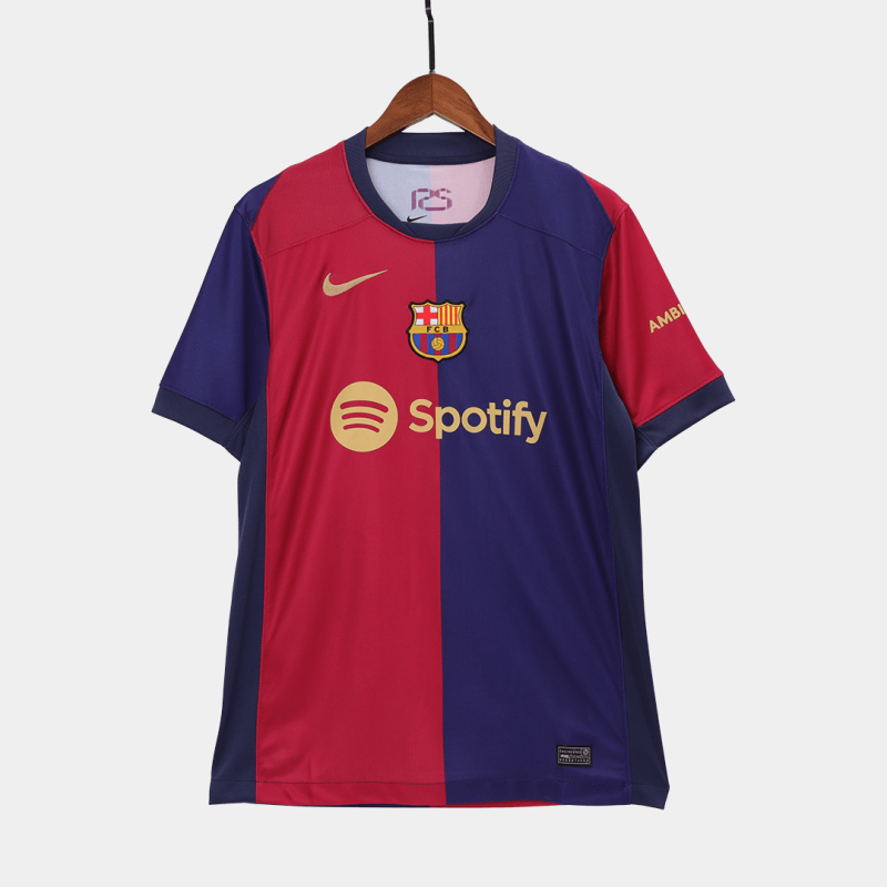 Barcelona Home Jersey 2024/25 If you're looking for sizes 2XL and 3XL, please click here. Description about the Barcelona Home Jersey 2024/25:Let me introduce the new Barcelona Jersey Home 2024/25, available for size S,M,L,XL,2XL,3XL,4XL. The Barcelona Jersey Home 24/25 pays homage to 125-year history of FC Barcelona. The Barcelona kit combines royal blue, navy, and red with gold logos. In terms of design, Barcelona jersey is half blue and half maroon. The Swoosh and Spotify logos are gold, while the badge colors remain the same as before. The neckline and cuffs are navy blue. What's more, there is a 125-anniversary logo embroidered in the collar. So obviously if you are a big fans of FC Barcelona, it's worth collecting, you can't miss this Barcelona jersey. Moreover, Gojersey uses lightweight polyester interlock fabrics to create a Barcelona jersey that mirrors the fit and feel of the Barcelona kit worn by FC Barcelona on the pitch. Where to buy cheap Barcelona soccer jerseys?Gojersey's vision is to offer customers the chance to wear top-quality, affordable Barcelona jerseys featuring their favorite teams. Like the Barcelona replica football jerseys, Barcelona retro football jerseys, and so on. We've also become the preferred choice for numerous wholesalers. We've also become the preferred choice for numerous wholesalers. Furthermore, if you have any question or issue of Gojersey, every customer will be assisted by our 1 to 1 professional customer service via whatsapp and online-chat. By the way, do u prefer more Barcelona Jerseys? Here are two recommendations for you. Barcelona Home Jersey Authentic 2024/25, Barcelona MESSI #10 Home Jersey Retro 2014/15.Details: