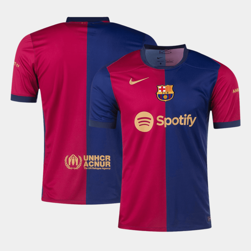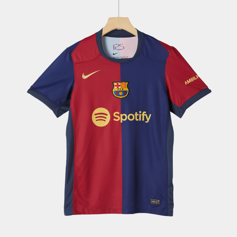 Barcelona Home Jersey 2024/25 If you're looking for sizes 2XL and 3XL, please click here. Description about the Barcelona Home Jersey 2024/25:Let me introduce the new Barcelona Jersey Home 2024/25, available for size S,M,L,XL,2XL,3XL,4XL. The Barcelona Jersey Home 24/25 pays homage to 125-year history of FC Barcelona. The Barcelona kit combines royal blue, navy, and red with gold logos. In terms of design, Barcelona jersey is half blue and half maroon. The Swoosh and Spotify logos are gold, while the badge colors remain the same as before. The neckline and cuffs are navy blue. What's more, there is a 125-anniversary logo embroidered in the collar. So obviously if you are a big fans of FC Barcelona, it's worth collecting, you can't miss this Barcelona jersey. Moreover, Gojersey uses lightweight polyester interlock fabrics to create a Barcelona jersey that mirrors the fit and feel of the Barcelona kit worn by FC Barcelona on the pitch. Where to buy cheap Barcelona soccer jerseys?Gojersey's vision is to offer customers the chance to wear top-quality, affordable Barcelona jerseys featuring their favorite teams. Like the Barcelona replica football jerseys, Barcelona retro football jerseys, and so on. We've also become the preferred choice for numerous wholesalers. We've also become the preferred choice for numerous wholesalers. Furthermore, if you have any question or issue of Gojersey, every customer will be assisted by our 1 to 1 professional customer service via whatsapp and online-chat. By the way, do u prefer more Barcelona Jerseys? Here are two recommendations for you. Barcelona Home Jersey Authentic 2024/25, Barcelona MESSI #10 Home Jersey Retro 2014/15.Details:
