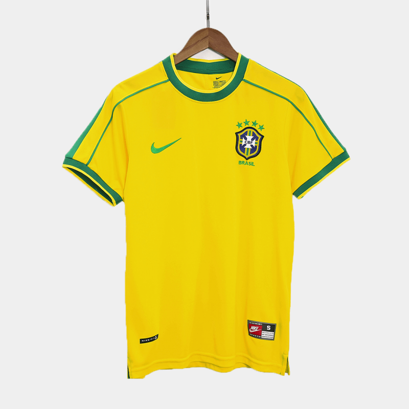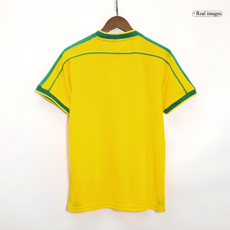 1998 Brazil Home Yellow Retro Jersey Shirt Model Year: 1998Material:PolyesterType of Brand Logo:EmbroideredType of Team Badge:Sewn On Version:ReplicaMade for: Man,
