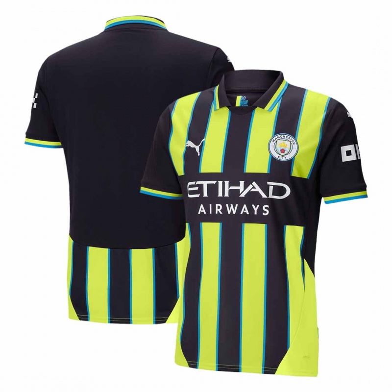 Manchester City Away Soccer Jersey 2024/25 Description about the Manchester City Away Soccer Jersey 2024/25:Let me introduce the Manchester City Jersey Away Soccer 2024/25, available for size S,M,L,XL,2XL,3XL,4XL. On May 30, 1999, Manchester City won the Second Division Play-Off against Gillingham thanks to a goal from Paul Dickov. To commemorate the exciting victory on May 30, 1999, the date is printed on the inside of the collar, making it clear that the Manchester City kit is monumental. The Manchester City Jersey is designed with a unique neon yellow and navy blue stripe. Vintage style collar is designed on the Manchester City Jersey. The classic paty of Manchester City kit is the iconic Manchester City FC badge on the chest, showing their pride and ambitions. Manchester City ambassador, stated this Manchester City jersey on this occasion: