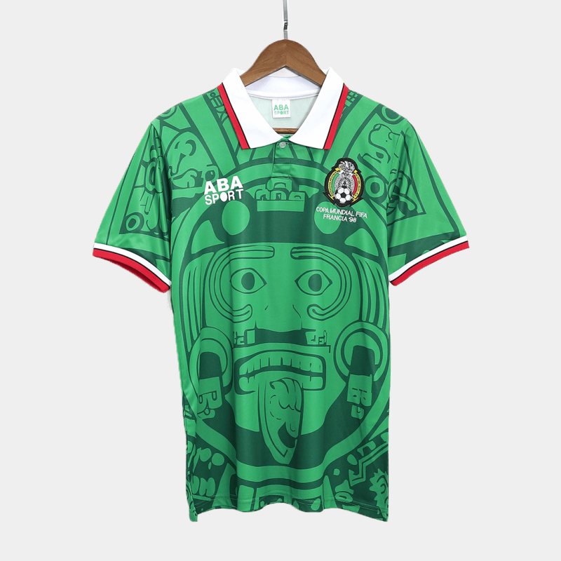 1998 Mexico Retro Home Green Soccer Jersey Shirt Model Year: 1998Material:PolyesterType of Brand Logo:PrintedType of Team Badge:EmbroideredVersion:FanMade for: Man,