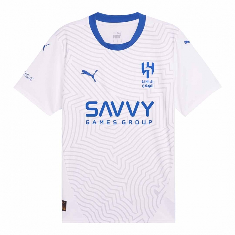 Al Hilal SFC Away Jersey 2024/25 Description about the Al Hilal SFC Away Jersey 2024/25:Unlike the Al Hilal SFC jersey 23/24, this time the colors of the Al Hilal SFC kit were matched together to make the Al Hilal SFC cheap soccer jerseys look cleaner. The Al Hilal SFC jersey maintained the traditional white colour scheme of Al Hilal SFC, with a clean white design and a round blue neckline as embellishment. Dri-FIT technology is carefully engineered into the Al Hilal SFC jersey working hard to wick away from your body to keep you cool and dry in even the match's most intense moments.This Al Hilal SFC jersey will be worn by the likes of Neymar, R